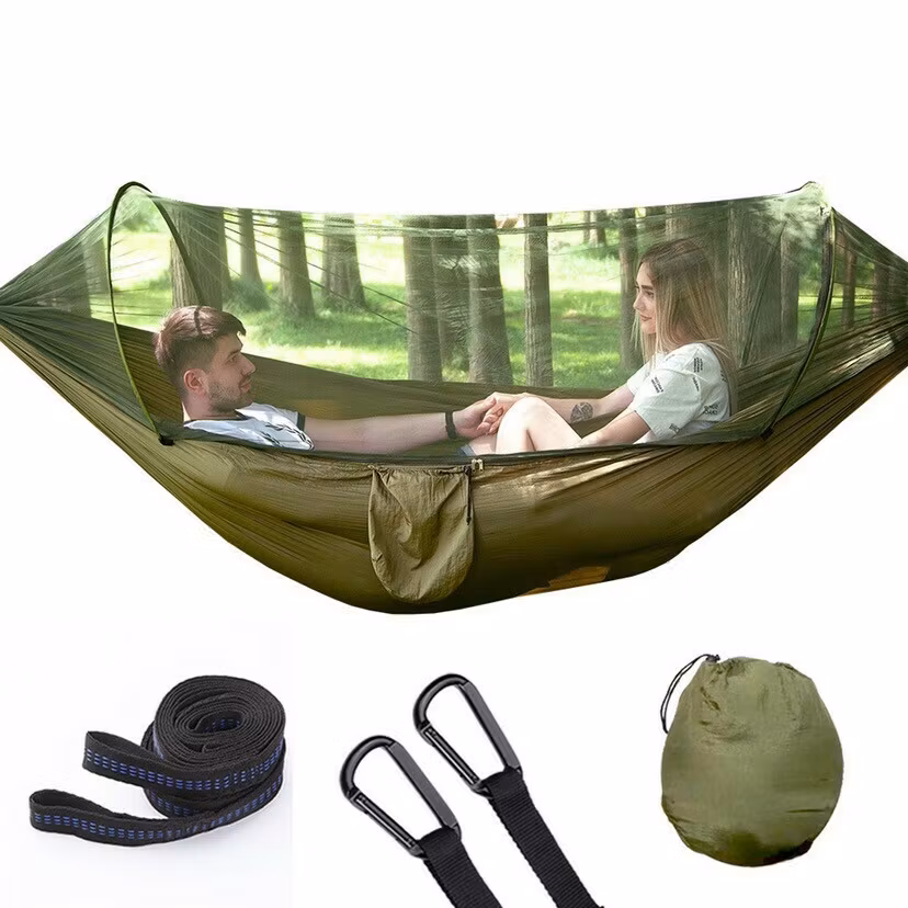 Slappna av i naturen med vår Hängmatta med Myggnät, tillverkad av högkvalitativt 210T fallskärmsnylon. Detta slitstarka, andningsbara och mögelbeständiga material är designat för att hålla länge och ge maximal komfort. Tack vare det integrerade myggnätet och den unika popup-ramen är den enkel att sätta upp och skyddar dig från mygg och andra insekter under dina äventyr. Perfekt för camping, vandring, backpacking eller bara en lugn stund i trädgården!