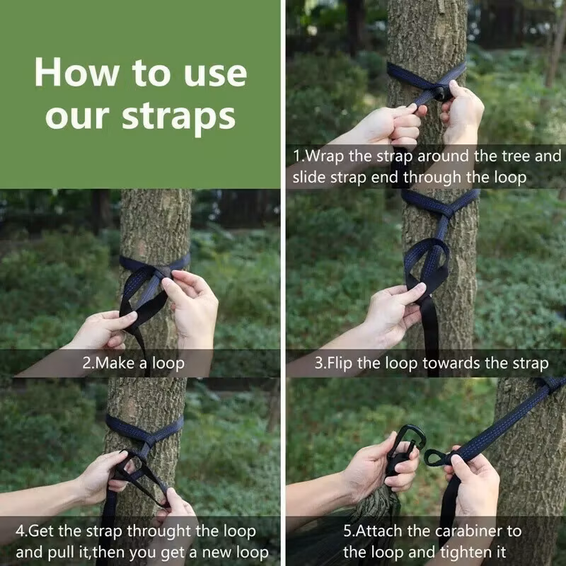 • ? Enkel att sätta upp med trädvänliga remmar och knutfri design.